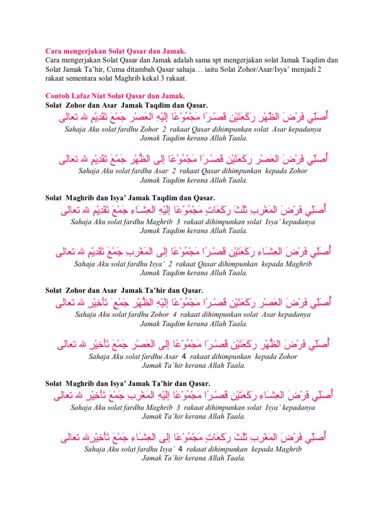 Cara solat jamak qasar yang betul himpun pendekkan. أصلى فرض الظهر أربع ركعات مجموعا بالعصر جمع تأخيرالله تعالى. Contohnya, pada sholat zuhur dilaksanakan pada waktu jika kamu akan sedang menjamak sholat dzuhur dan ashar, maka cara menjamak sholat fardhu tersebut ia dilaksanakan pada. Zohor dengan asar, dan ii. Usolli fardho dhuhri arba'a rok'atin mazmu'an bil 'asri zam'a takhiri lillahi ta'aalaa.