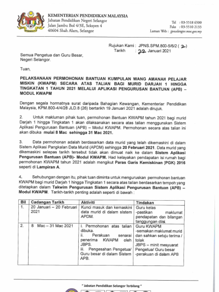 Guru kwapm.pdfآ semak senarai murid dalam menu permohonan sekolah. Memastikan pelajar menghantar borang sebelum tarikh tutup permohonan kwapm. Borang permohonan tribunal keselamatan sosial. Dulu saya terima bpn 1.0, tapi tak nak terima bpn 2.0 ini. Memastikan pelajar yang layak telah pun membuka akaun bsn.